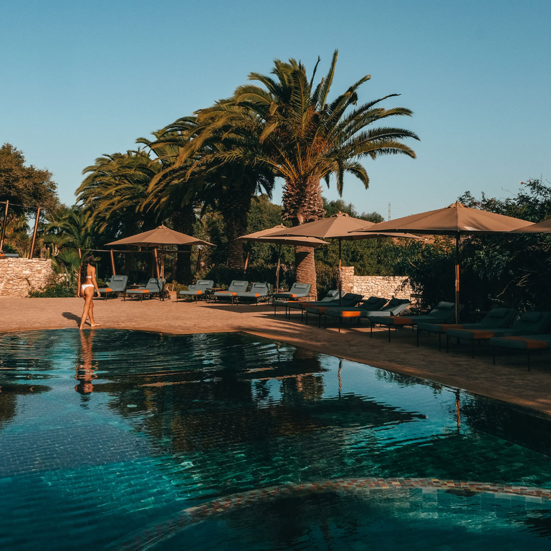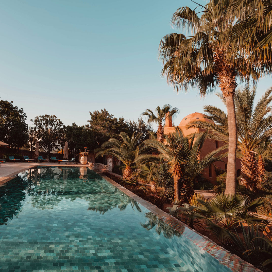 Derrière ce haut mur se cache une oasis de tranquillité. Sous l’ombre des palmiers, des oliviers et des bougainvilliers et encadrés de fleurs exotiques, de petits chemins serpentent à travers les jardins, desservant ici et là villas paisibles, terrasses inondées de soleil, hammam et piscine. Deux piscines à vrai dire, et deux restaurants : pour chacun, vous aurez le choix entre l’option famille et l’option réservée aux adultes. Une séparation ingénieuse et appréciable, en particulier dans un établissement qui fait de la relaxation sa priorité.
