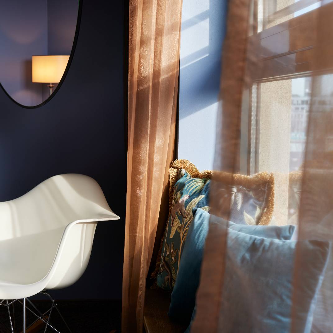 Dire en quoi les parties communes du George le font ressembler à un Gentlemen's club de l’époque victorienne serait un travail long et fastidieux. Aussi, à défaut d’être exhaustif, jetons-nous sur les évidences : motifs des papiers peints, authentiques fauteuils clubs, stricte observation de l’afternoon tea, jolie collection de single malts et de whiskies tourbés. Malgré des lits queen-size et quelques fauteuils Chesterfield, les chambres se montrent plus à l’écoute de leur espace-temps, s’évitant le pastiche en mariant l’Union Jack à des lignes plus modernes et des tons plus gourmands, du champagne au chocolat.