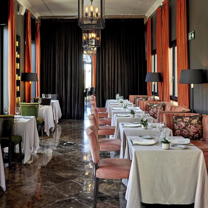 Son imposante structure a conservé une grande partie de son héritage Art déco et Art nouveau. Ses plafonds infinis, ses portes arquées, ses balustrades en fer et ses détails décoratifs en pierre datant de 1917 encadrent élégamment des intérieurs modernes conçus par la firme barcelonaise Pilar Garcia-Nieto et Luzio. Enrobé de nuances à la fois douces et tamisées, le lieu ressemble davantage à un établissement new-yorkais que madrilène. Mais il ne se montre pas pour autant guindé. On retrouve ainsi souvent dans l’hôtel, parfois glissés sous une collection de portraits à l’huile posant dans des cadres dorés, les orignaux fauteuils papillon BKF. Les 76 chambres et suites démontrent un caractère un brin moins trempé que le lobby glamour de l’hôtel, mais les équipements ne manquent pas. Douche à l’italienne, système son Bluetooth, Wi-Fi gratuit et thé offert habillent chacune d’elles. Les chambres Deluxe s’offrent de très jolies vues sur le boulevard et les suites ne manquent bien sûr de rien, entre coin lecture et majordome personnel, au cas où vous ne trouveriez pas le bouton pour mettre en marche votre machine Nespresso.
