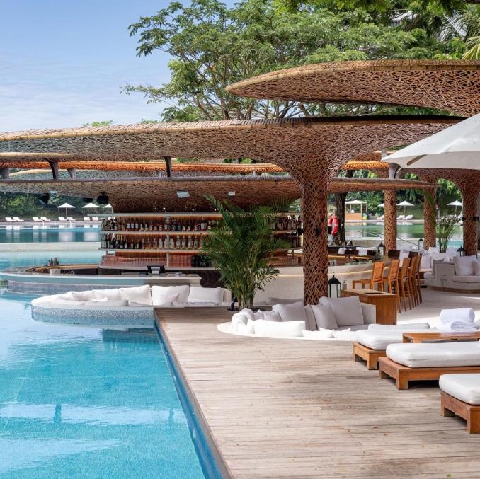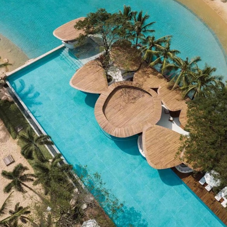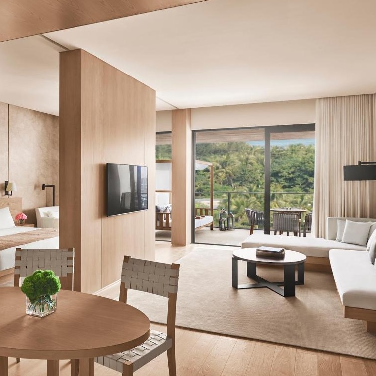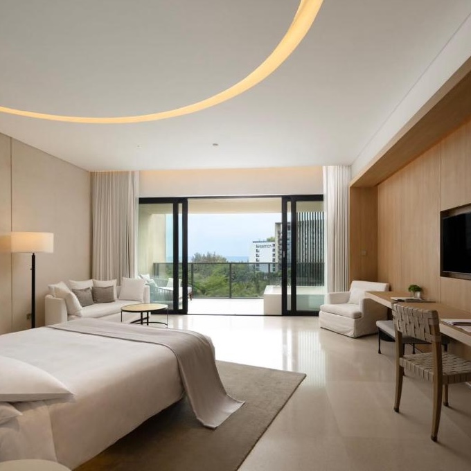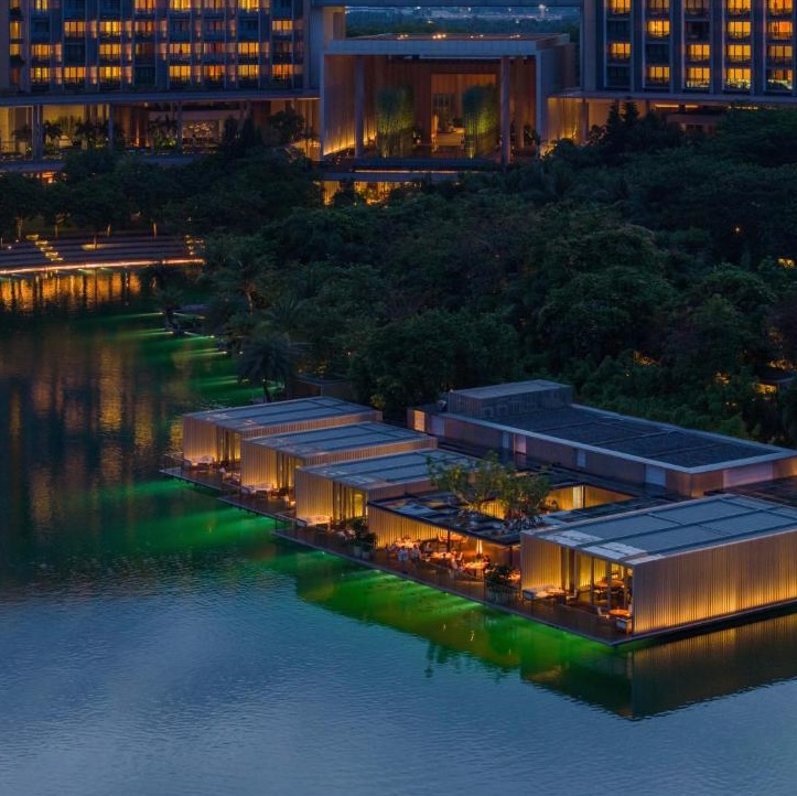 On Hainan Island’s southern coast, The Sanya Edition turns fifty acres of waterfront into a contemporary sanctuary. At its center lies a vast man-made “private ocean,” a feature that anchors the resort’s play between water, light, and landscape: bamboo groves, lotus pools, and lanterns that drift across the surface at night. Every room faces the sea, while restaurants float, spill onto the sand, or rise above the palms. Sleek yet deeply atmospheric, it reimagines tropical luxury through a distinctly Chinese lens.