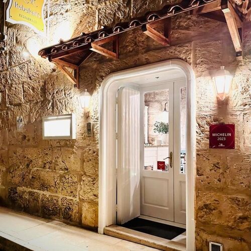 Set within a historic and elegant building nearly 300 years old, this restaurant boasts sophisticated and refined interiors. Chef-owner Andrew Vella showcases Mediterranean cuisine with a creative and personal touch. The veal loin, served with fresh peas, bacon, smoked leeks, and sesame seeds, is a true delight. During the summer, guests can enjoy a cool and tranquil dining experience in the charming courtyard.