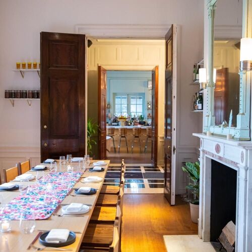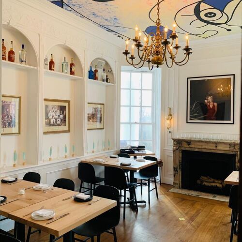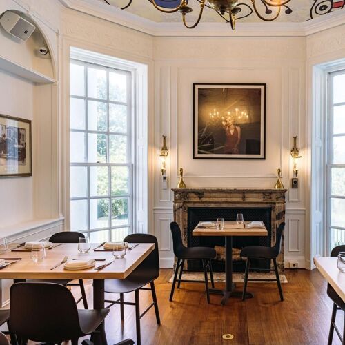 This destination-worthy dining room is coveted for its idyllic setting of sprawling estate grounds with a carriage house, cottage, and two historic, freshly minted mansions. Nestled within these luxurious surrounds is Goosefeather, where guests are greeted by well-appointed nooks, all blending old-fashioned charm with new-world elements.