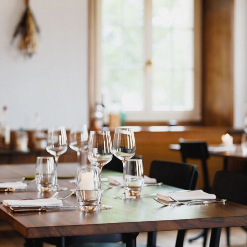 Une adresse idyllique. Dans un ancien et charmant poste de douane datant de 1786, dont la façade arbore l'image de Sainte Vérène, Dave Wälti concocte une cuisine actuelle qui met à l’honneur les produits régionaux. Des saveurs intenses et des contrastes harmonieux sont combinés avec talent dans des plats épurés comme le tiradito de saumon ultra-frais de Lostallo servi avec un lait de tigre à l'acidité équilibrée et au goût épicé, accompagné d'une purée de piment jaune doux et d'un croquant de quinoa aux notes de noisette. Commandez à la carte ou optez pour le menu surprise, qui se décline en quatre ou six plats. Le parquet, les murs lambrissés, les tables en bois brut et le plafond à caissons restauré avec soin créent un cadre accueillant, où la chaleur du bois se mêle à un design contemporain. Le service est assuré par une équipe sympathique, avenante et discrète. Un parking à niveaux (Parkhaus Im Winkel) se trouve au coin de la rue.