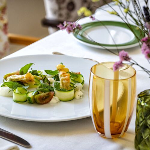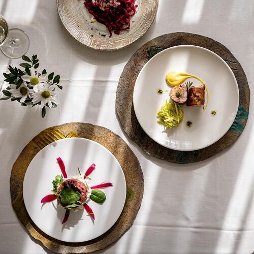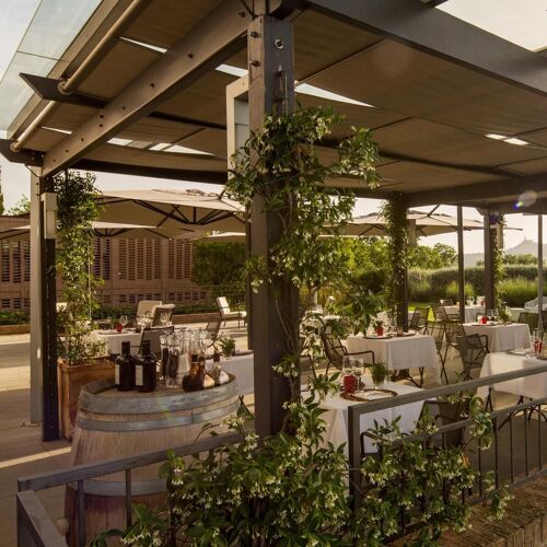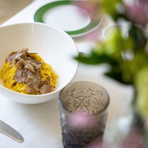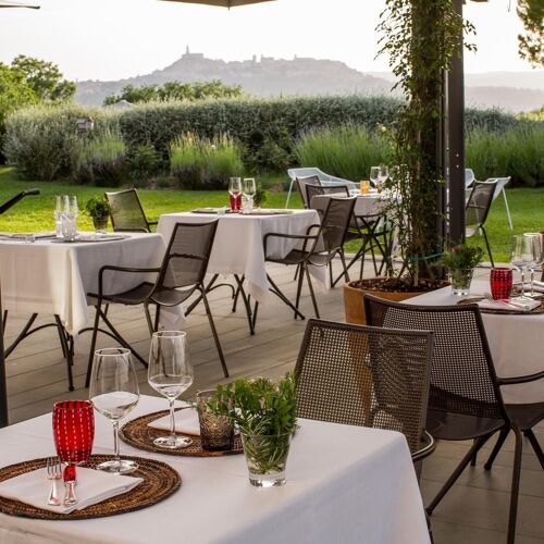 This restaurant occupying an elegant villa in a panoramic location with views of Todi and the surrounding countryside serves modern cuisine with its roots in Umbrian tradition. The extra-virgin olive oil comes from directly from the estate, as does some of the wine; there’s also an interesting selection of champagnes. Our inspector recommends the roast suckling pig accompanied by rosemary-flavoured potatoes, as well as the hazelnut cream, yoghurt sorbet and warm chocolate foam dessert. Quiet, comfortable guestrooms complete the picture.