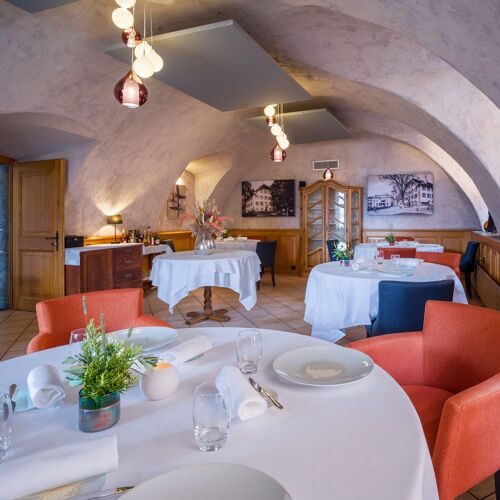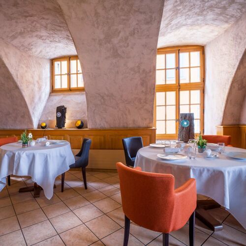 Au centre du bourg, près du clocher, cette maison de pays cultive la tradition en toute simplicité. Sous la grande voûte de la salle à la manger (offrant une fraîcheur appréciable e été), on retrouve une cuisine française de saison avec un choix de menus en plusieurs services. Aux fourneaux, Grégory Halgand propose de belles combinaisons : asperges, pamplemousses et pistaches ou encore homard de Bretagne, betterave rouge, mûre et bisque. Côté dessert, c’est Audrey Feutren-Halgand qui nous régale en suivant les saisons, comme avec cette variation sur l'abricot sous différentes formes (compoté, gélifié, grillé), accompagnée d'une mousse de noix de coco. Elle s’occupe également de confectionner le pain maison. Peintures et sculptures d'artistes ponctuent l'intérieur, tandis qu’une agréable terrasse s'offre à nous à l'extérieur. À noter, un confortable salon avec une bonne sélection de cigares, et une partie "café" qui contient une carte orientée brasserie.
