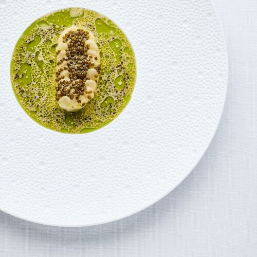 Thierry Theys’ cuisine is the pinnacle of “nuanced”. Despite his youth, he has already made a name for himself on the Belgian fine dining scene and owes his reputation to highly individual recipes. Right from the first bite, he unveils his high-flying precision and technical craftsmanship. Not afraid of challenges, each dish is rich in emotion. For example, he may prepare North Sea crab with finger lime, avocado and a subtle sweet-sour flavoured stem lettuce. He may enhance suckling veal, simply grilled, with a barigoule sauce and a gravy jazzed up by kimchi. This chef knows how to nurture and draw out the distinctive character and tiniest details of outstanding ingredients. Suave, delicate food that suits our modern tastebuds. The mind-blowing experience is further enhanced by a fantastic selection of wines, available by the glass, a decadent range of sweet titbits served with coffee and super slick service. A stylish interior, fantastic wine cellar and marble details set the scene in this exceptional establishment on a permanent quest for excellence.