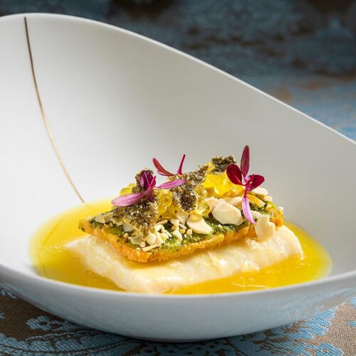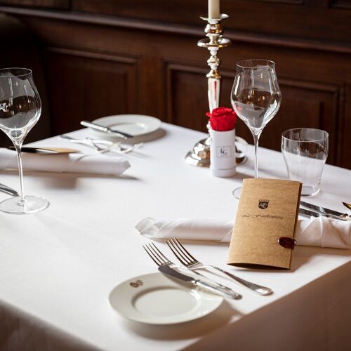 What an incredible spot! Guests cross a bridge to reach the lavishly restored Schloss Frankenberg, which enjoys a beautiful elevated location. As well as incorporating a hotel and winery, this grand estate is also home to Le Frankenberg, whose stylish and elegant interior exudes historical charm. No stranger to the fine dining scene, Steffen Szabo brings his own sense of expression and balance to the regional and international ingredients he showcases in his seasonal five- to eight-course set menu. A fish course of char teamed with pumpkin purée, foam and roasted seeds, for example, makes for an interesting play on textures. Restaurant manager and sommelier Sandra Tober provides friendly service and judicious wine recommendations.