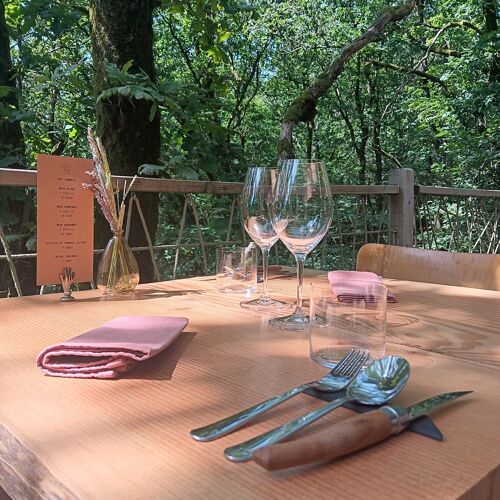 This log cabin built entirely out of wood stands in quiet countryside amidst forest and woodland. The bucolic scene is set for Olivia, the exuberant lady of the house and chef Adrien to get to work and demonstrate how their shared love of nature has shaped their mindset. Genuine ambassadors of their local producers, they take real pleasure in showcasing outstanding produce. Chef Adrien may skin a perfectly ripe tomato, for example, before filling it with whipped cream jazzed up with horseradish, all of which to accompany velvety gazpacho and roast buckwheat. A fresh seasonal menu packed in rustic, wholesome flavours.
