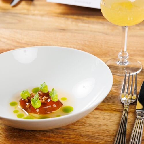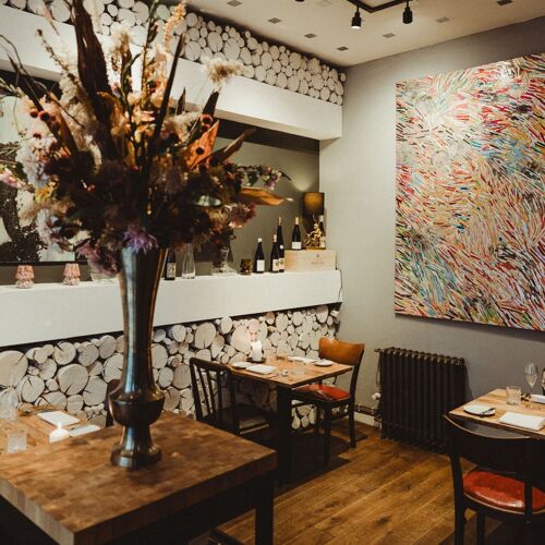 The atmosphere here is really neighbourly, almost intimate – you immediately feel welcome! This is due both to the appealing bistro setting and to cordial and professional proprietor and sommelier Fabian Fischer. He has a pleasingly personal touch in his dealings with diners and a clear enthusiasm when it comes to recommending the most suitable wine from a list dominated by German and French labels. Steven Zeidler is in charge in the kitchen, cooking up a creative take on classic cuisine that incorporates Asian flavours. His dish of Korean kimchi, Chinese XO sauce and Japanese dashi is a shining example from the set menu, of which a vegetarian version is available upon request. There are also a few small tables to be had on the pavement in front of the restaurant.