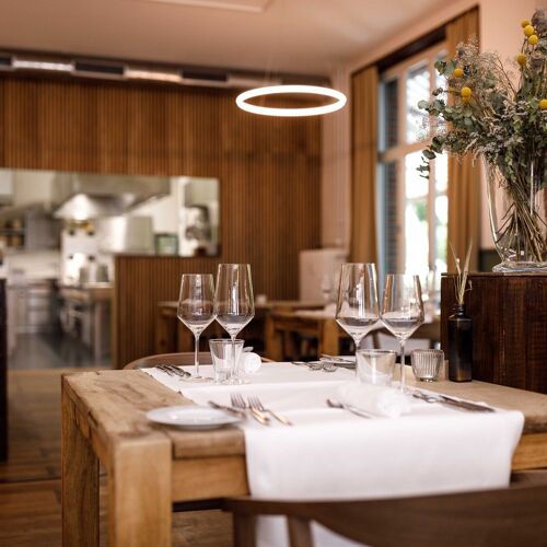 In questo ristorante ospitato nell’ex ambasciata statunitense, nel bel quartiere di Kirchenfeld, si respira un’atmosfera molto piacevole. Il design degli interni è caratterizzato da un’armoniosa combinazione di linee essenziali, calde finiture in legno e colori sobri, a cui si aggiunge una cucina aperta. Il dehors sul retro è richiestissimo in estate. L’impegno dei proprietari, Sara e Benjamin Jann, è palpabile, sia nel servizio affabile e attento offerto da un team che fa di tutto per soddisfare ogni esigenza degli ospiti, sia nella deliziosa proposta culinaria. Segnaliamo il tenero ragù di Bäggli a base di maiale Duroc dell’Aaretal con una delicata spuma di patate, olio aromatico all’erba cipollina e croccanti brunoise di patate. Oltre al menù fisso stagionale da sei portate servito a cena, è disponibile un piccolo menù per il pranzo o per pranzi di lavoro da tre a cinque portate.