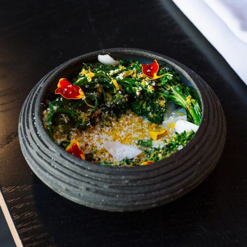 In this city, finding a five-course menu for under a hundred dollars is a tall order. Chefs Serena and David Fisher make it seem effortless, though, bringing their signature magic to this second act in a sleek new space. The cuisine keeps an unfussy Californian simplicity, featuring solid technique and thoughtful flavor combinations that allow quality seasonal ingredients to shine. Think carefully shaped caramelle pasta that pairs a filling of sweet and nutty kabocha squash with buttery chanterelles, or crisp-skinned black cod with sunchoke confit and a finely tuned shellfish broth. Desserts never fail to end the meal on a strong note, as in a perfectly tender, moist apple crumb cake dressed up with an orange bay leaf ice cream and satsuma granita.