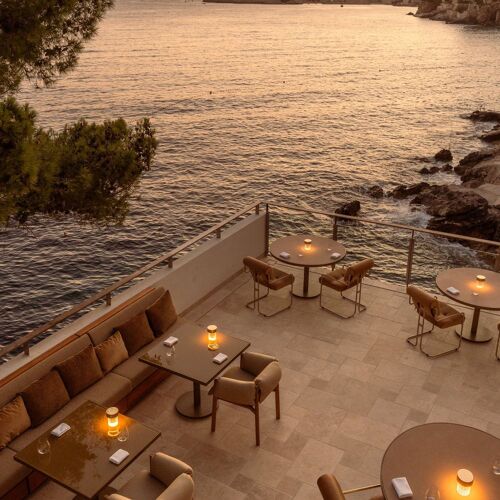 Fuori dal centro città, relax e tranquillità sono assicurati a Villa Dubrovnik. Un aperitivo sul roof bar regala incantevoli viste sulla costa, così come la terrazza del ristorante Pjerin. La cucina è brillante e riflette la stagione e il territorio, con il mar Adriatico che la fa da padrone. I primi fatti in casa sono una vera chicca e gli spaghetti all'astice sono diventati, giustamente, la specialità della casa. Il servizio discreto e raffinato vi farà scoprire i vini croati ideali da abbinare al menu.