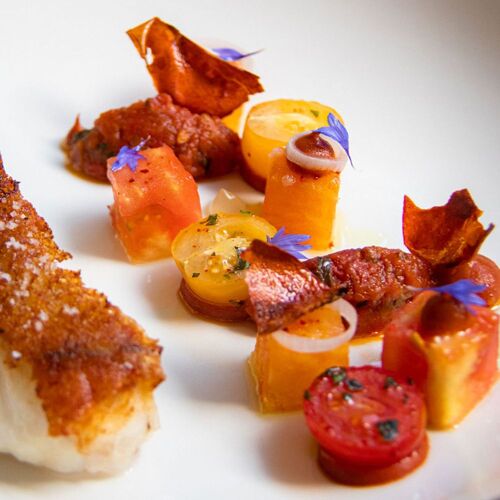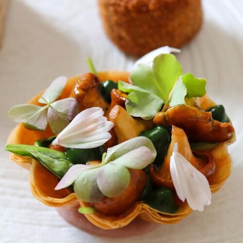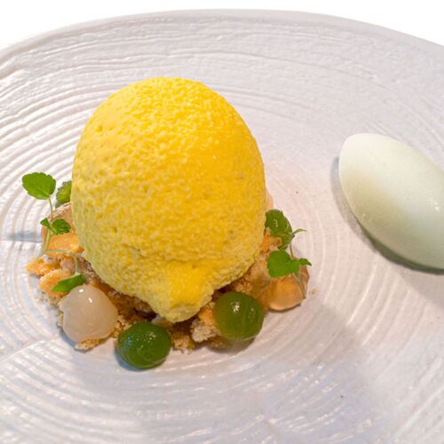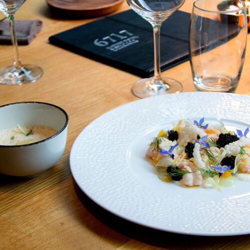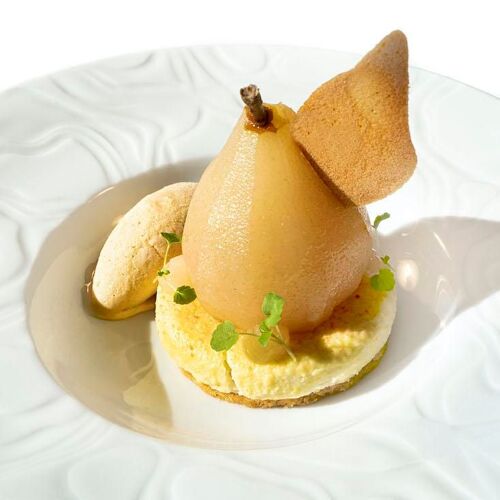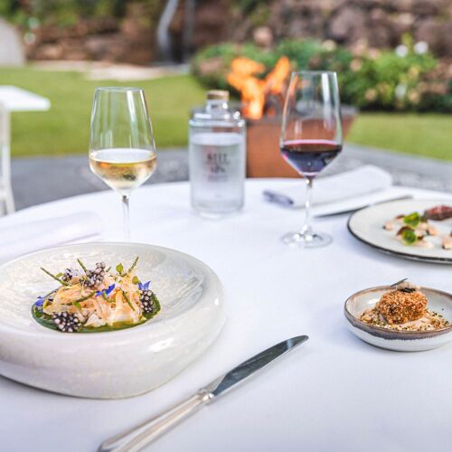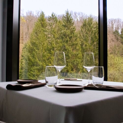 Looking out onto the woods and decorated in harmony with nature, La Table offers a gourmet menu and a longer “discovery” option highlighting the day’s produce. The cuisine is modern and some of the vegetables come straight from the garden. Herdshire sirloin steak served with a variation of artichokes, onions and intense jus gives an indication of the style.