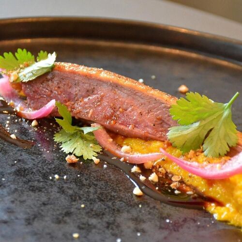 This spruce, endearing bistro on the main square of Illies is smoothly and passionately run by former Top Chef contestant, Christophe Pirotais and his partner Julie Dieudonné. Their gutsy indulgent cuisine is unveiled in an inspired, big-boned surprise menu, illustrated by a delicate pannacotta of white asparagus with radish-flavoured ice cream or a fillet of seabream escorted by chickpea fritters and a creamy jus of smoked herring roe. The welcome is warm and cheerful and the service is as smooth as a silky bearnaise sauce. Lovely rear patio for alfresco dining in fine weather.