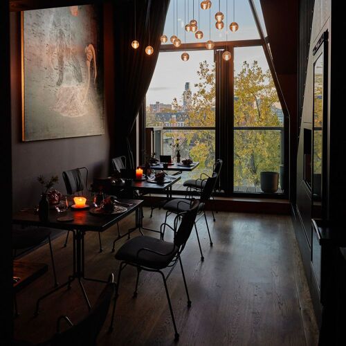 The location is out of the ordinary, as is the philosophy behind the cuisine! Housed in the city's narrowest building, which is still seven storeys high, this stylish and sleek restaurant boasts fantastic views of the River Main through large floor-to-ceiling windows. On the menu: 100% vegan cuisine made from organic produce. Permaculture is the name of the game here, meaning only those regional ingredients that have been produced ecologically and in harmony with nature are used in the dishes. In keeping with this ideology, much of the produce used comes from the restaurant's own local farm. The dining experience lasts about five hours from beginning to end, with the set menu being served to all the guests at the same time. Head chef Ricky Saward provides detailed explanations of the dishes, bringing a performative element to this showcasing of his own philosophy and the resulting elaborate creations. To complement the menu, choose from German wines or house-made alcohol-free beverages. Good to know: It's not easy to get a table here, so book well in advance!