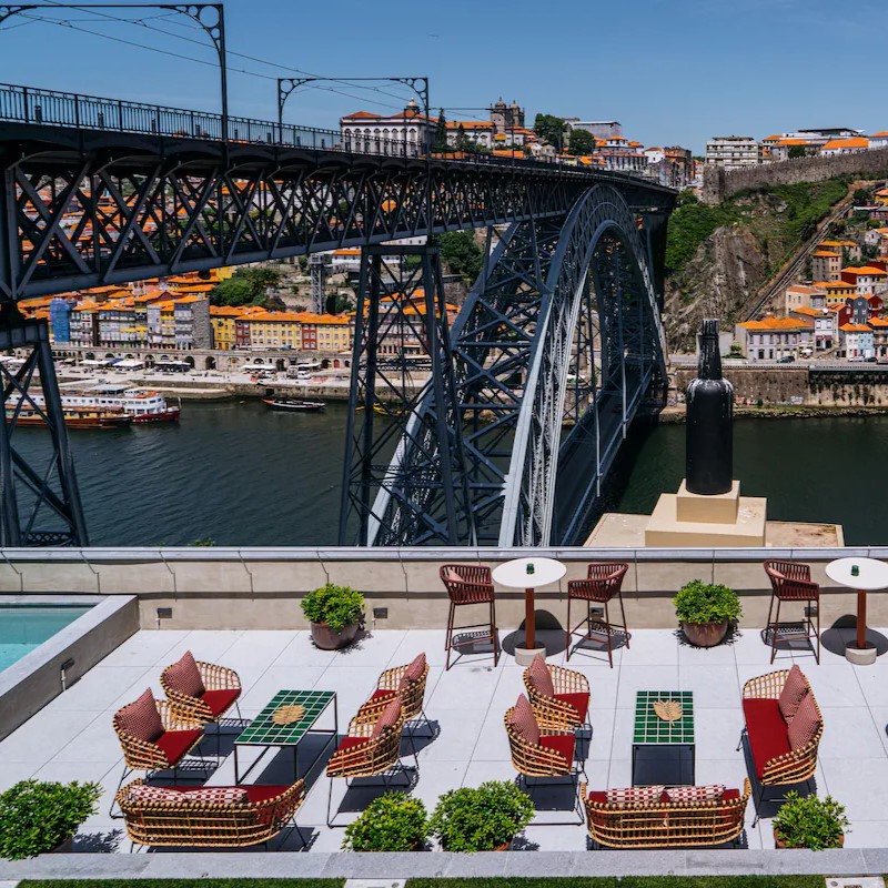 Most of the Vincci hotels are in Spain, but one of the best is in Portugal, prominently positioned beside the Don Luís I Bridge that connects the cities of Porto and Vila Nova de Gaia. Vincci Ponte de Ferro is on the latter side, housed in a trio of old warehouses originally used to store wines produced in the region. But the restored interiors don’t look like any storage space you’ve ever seen — they’re sleek and industrial, with exposed granite walls, double-high ceilings, and huge wrought iron-framed windows.