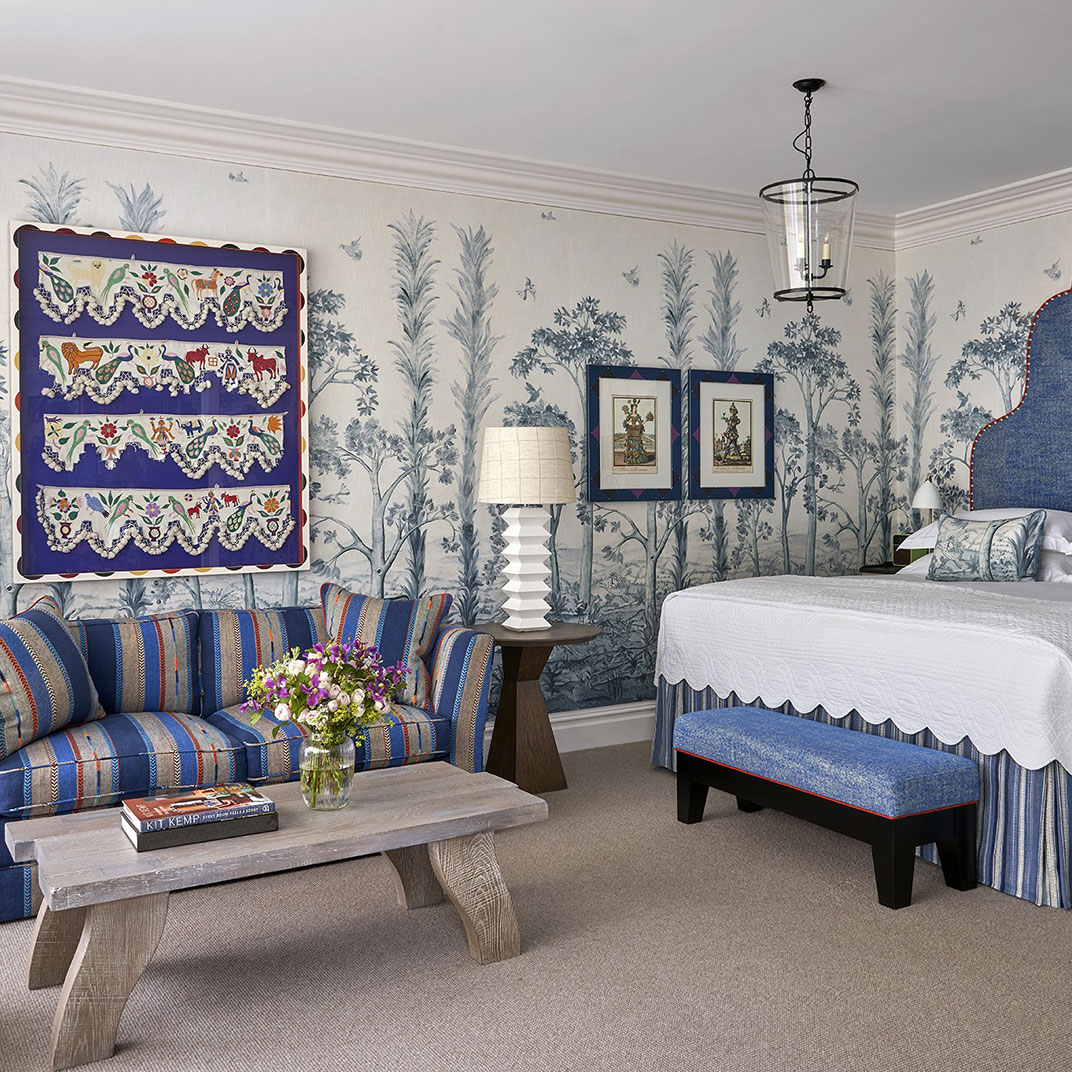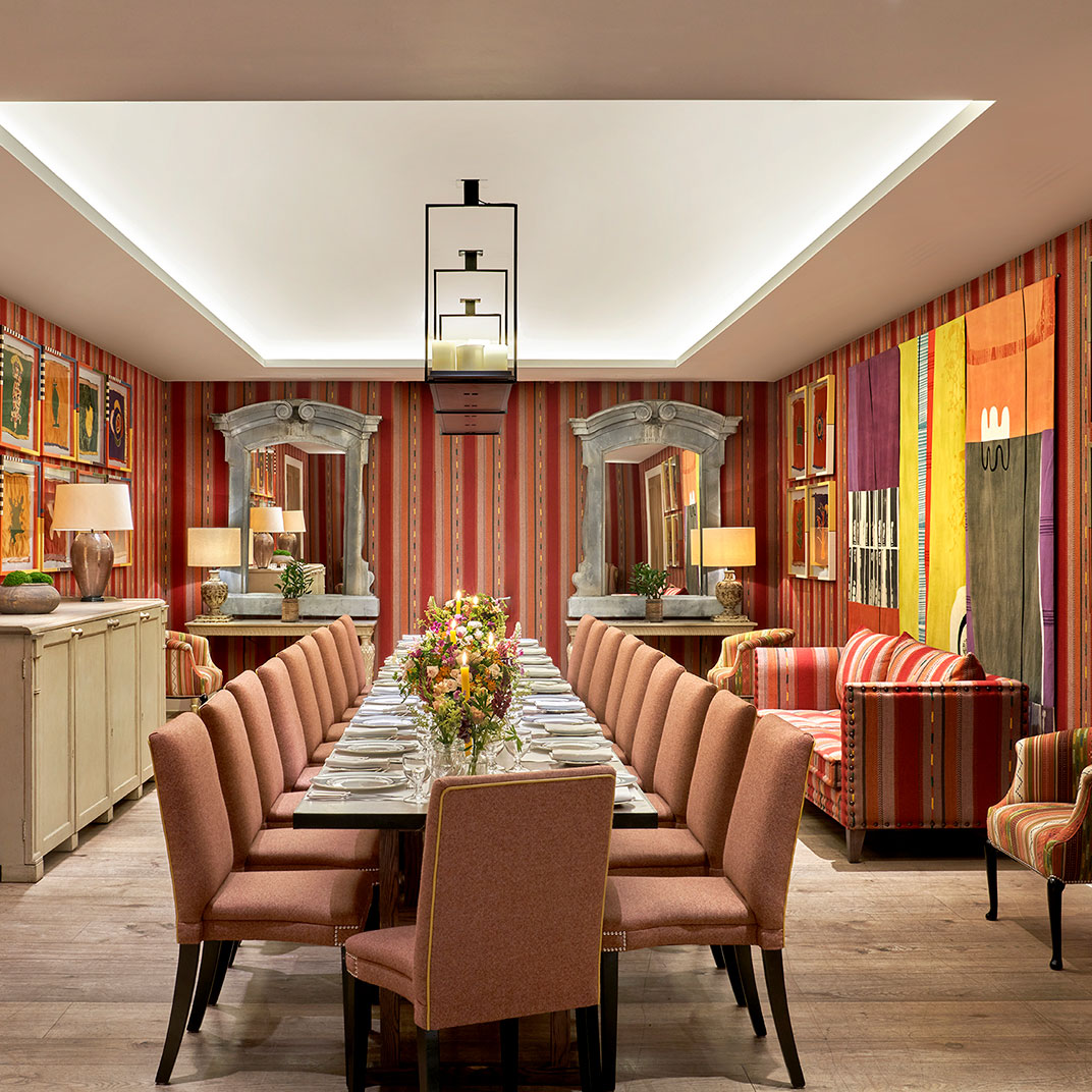 Il tutto si direbbe piuttosto vivace, naturalmente, ma l'atmosfera qui appare comunque essere un mondo a parte rispetto a quella di Piccadilly Circus, che pur si trova ad appena un centinaio di metri di distanza. Ormai sapete cosa aspettarvi dalle camere: un lusso moderno senza pari, arredate nello stile inconfondibile di Kit, che fonde stampe e colori vivaci con pezzi d'antiquariato eclettici ed eleganti pezzi contemporanei, il tutto illuminato dalle ampie finestre Crittall, che riescono a sfruttare al meglio il sole londinese, a volte debole. Sapete anche che il servizio sarà di prim'ordine, essendo ben lungi dall'essere il primo rodeo dei Kemp in fatto di personale per un hotel di lusso. Ed è lecito aspettarsi che la clientela sia interessante, se non addirittura costellata di star, con la maggior parte dell'industria teatrale e cinematografica britannica che ha sede, com'è, a pochi passi da Ham Yard (e quel cinema nel seminterrato non guasta). D'altronde, non è la presenza di star, di per sé, a rendere un hotel di Firmdale quello che è, ma il fatto che è praticamente impossibile trascorrere la notte senza sentirsi a propria volta un personaggio celebre.
