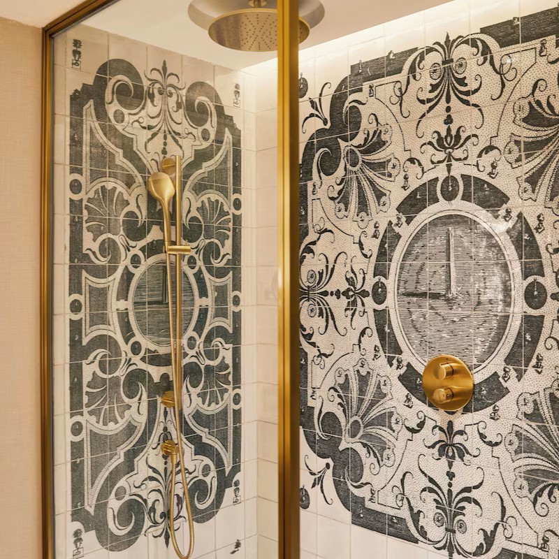 The original stained-glass dome is still in place above the reception, while guest rooms are high-tech beneath their old-fashioned dress — rooms feature spacious, efficient bathrooms and soundproof windows, equally suited to muffling the street noise and to keeping in the music from the obligatory Bang & Olufsen CD players.