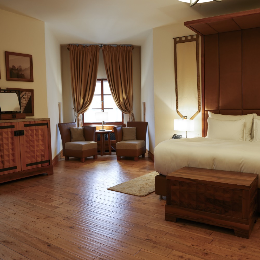 The hotel prides itself on its culinary excellence, boasting a top-tier restaurant where skilled chefs create innovative dishes that tantalize the taste buds. Wine aficionados will appreciate the exclusive wine cellar located in one of the castle's historic towers, where a fine selection of wines awaits alongside expert-led tastings. The hotel's garden contributes fresh ingredients to the kitchen, ensuring meals are made with the freshest local produce. Additionally, the picturesque setting of the castle makes it a sought-after location for romantic weddings, with tailored packages designed to make each celebration enchanting and memorable.