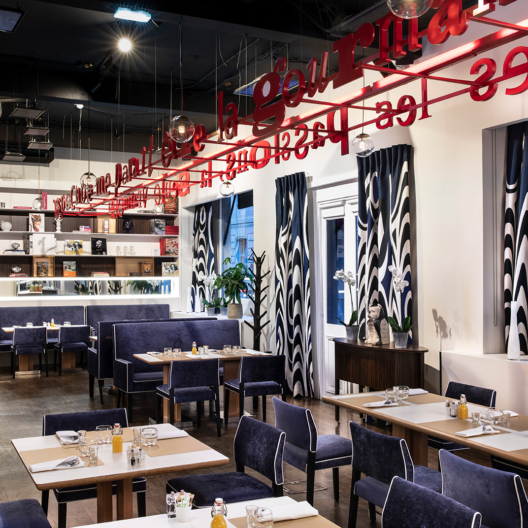 Per gli ospiti che passano qui la notte, la colazione è qualcosa da non perdere: viene servita a buffet a pian terreno nella The Cantine, che una volta era la sede del Jazz Club. La sala è stata completamente rinnovata, ma lo stile leggermente decadente e intrigante del Club è stato preservato. Spaziosa ed arieggiata, la sala è luminosa grazie a lampade a muro lilla e a divani color verde acido, sedie in metallo leggero, tavoli in legno e lampade in stile industriale. Sulle pareti, foto di fiori retroilluminate molto kitsch danno quella sensazione di "la mattina dopo la notte prima", un saluto all'anno passato, così come portano un drammatico contrasto con l'attuale tematica industriale.