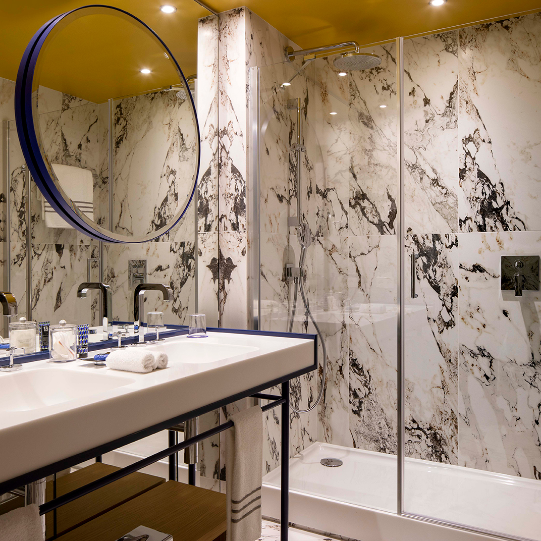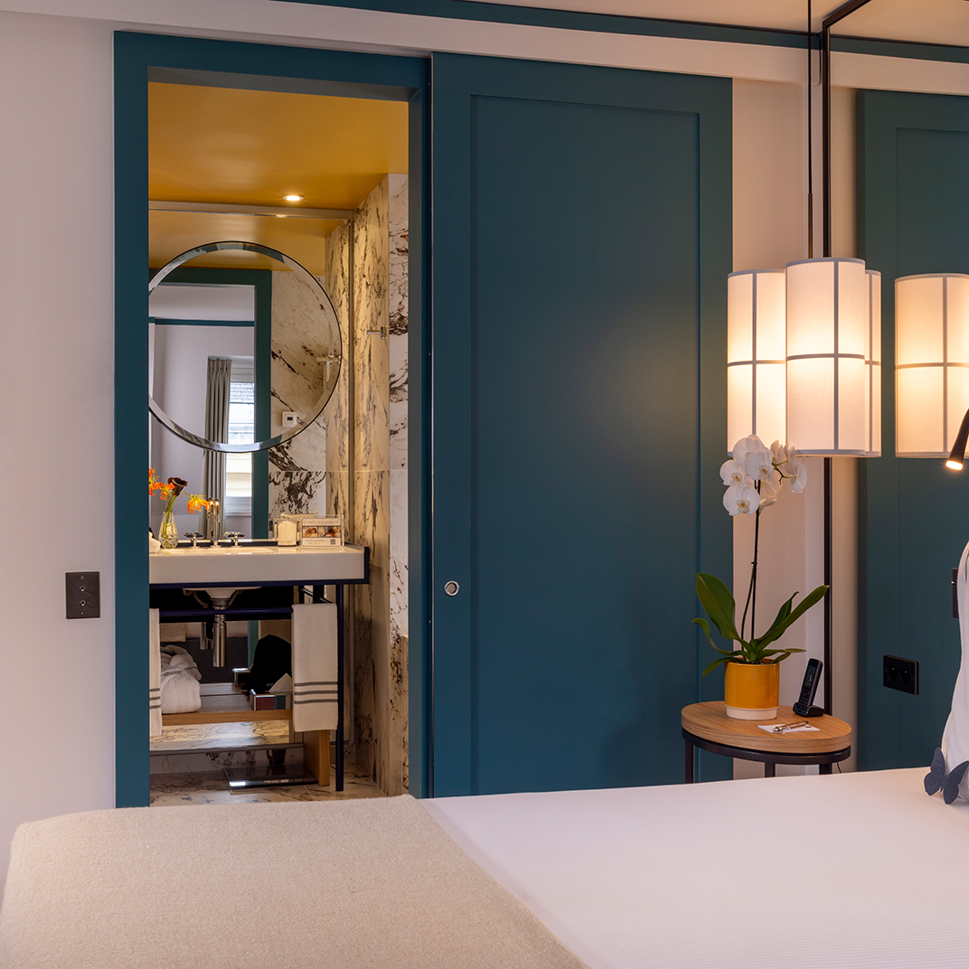 Concepito per attirare un pubblico giovane e alla moda, l'Hotel Bel Ami è decorato con tenui tonalità della terra, su stile chic minimalista. Linee nette e colori che spaziano dal caramello al verde anice e al blu infondono alle stanze un'atmosfera di tranquillità ed eleganza informale, sottolineata dai bagni in marmo bianco. Tutte le stanze dispongono di una cassaforte privata.