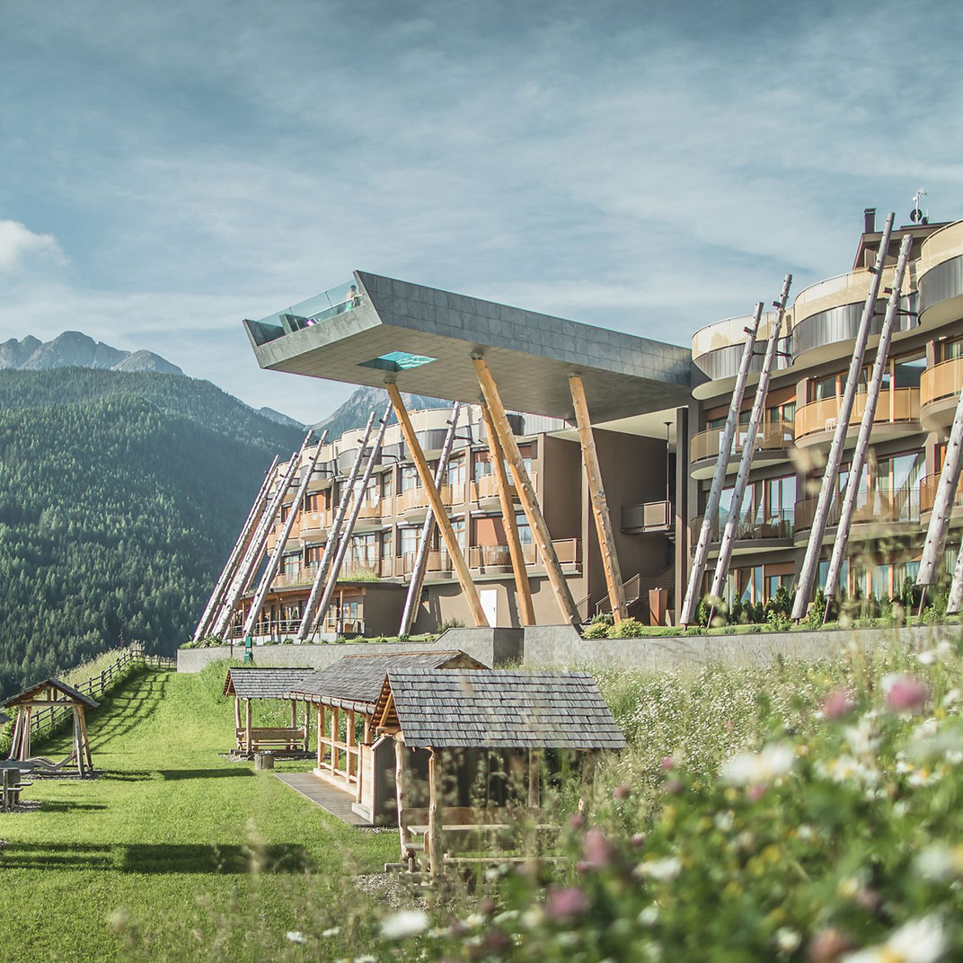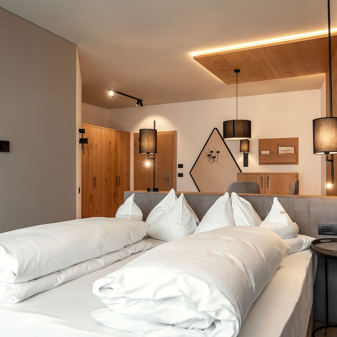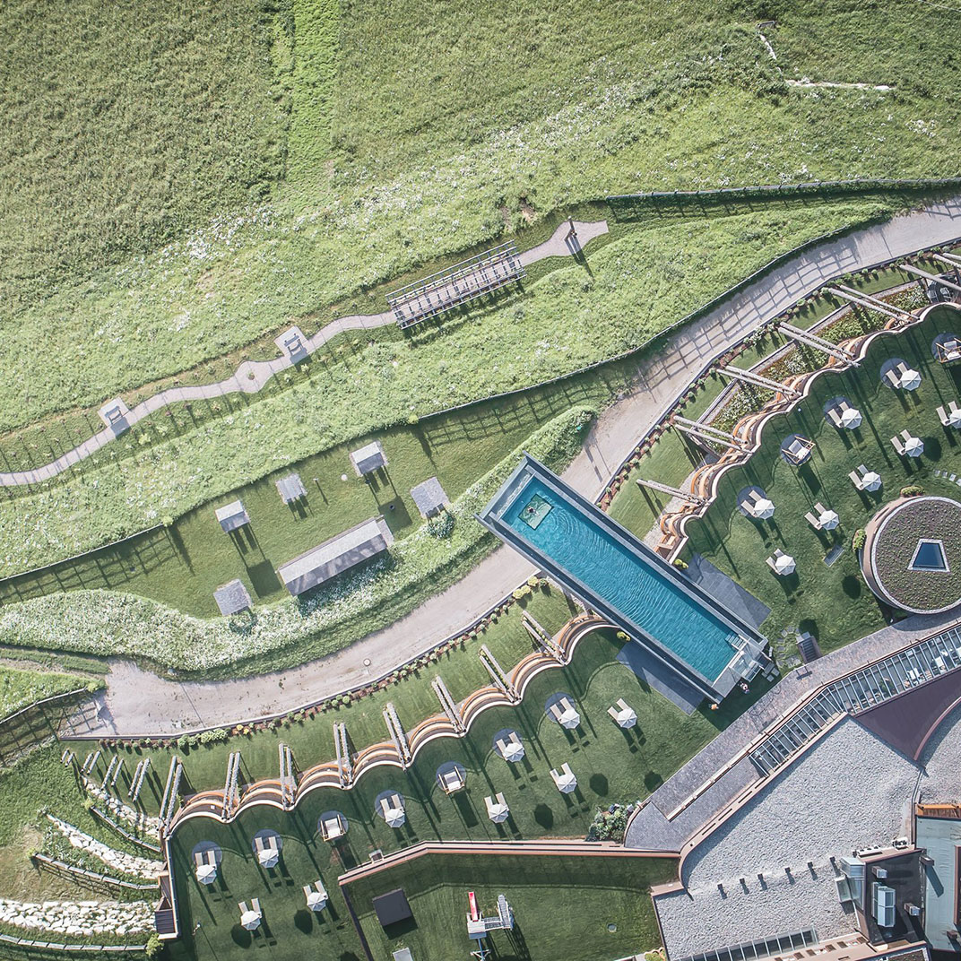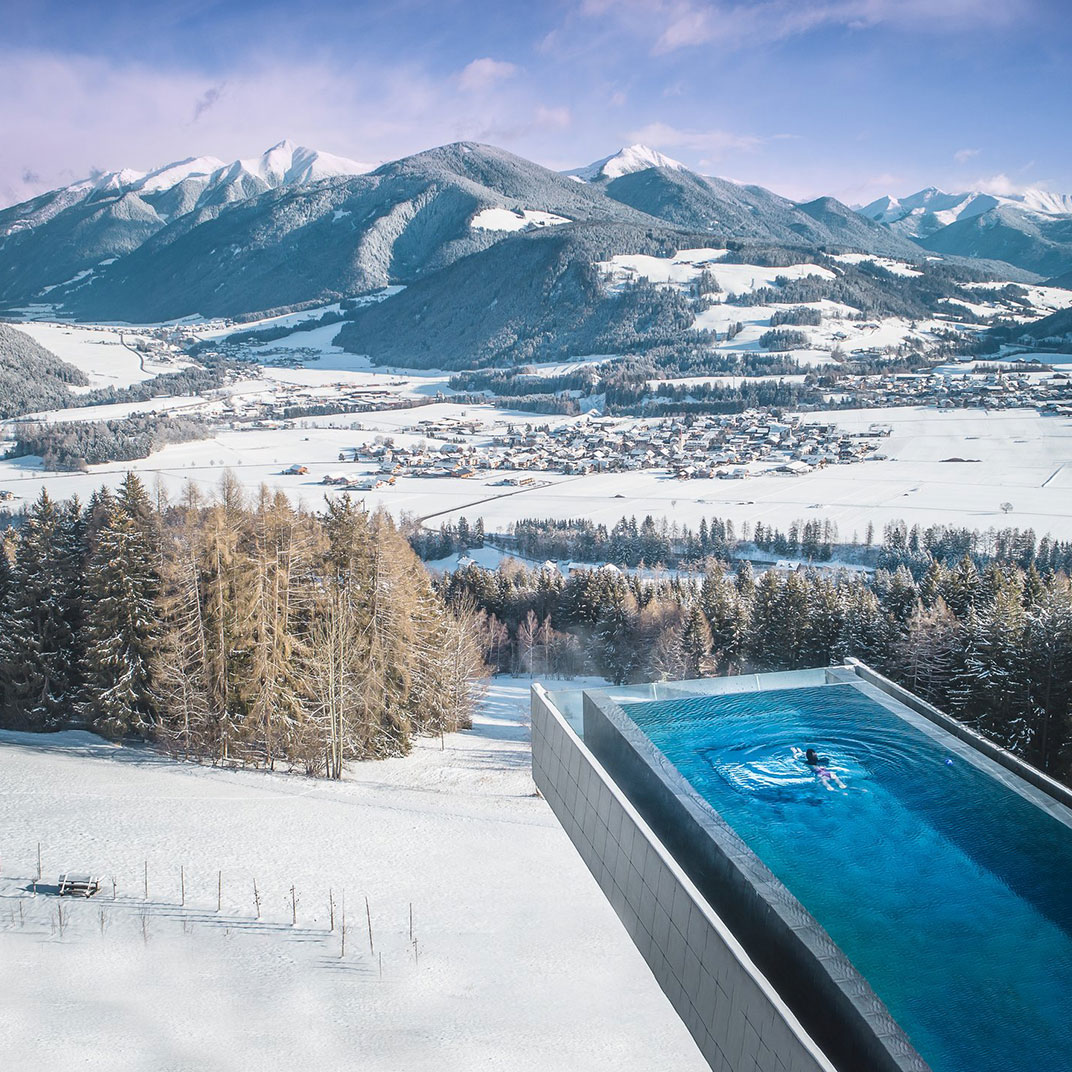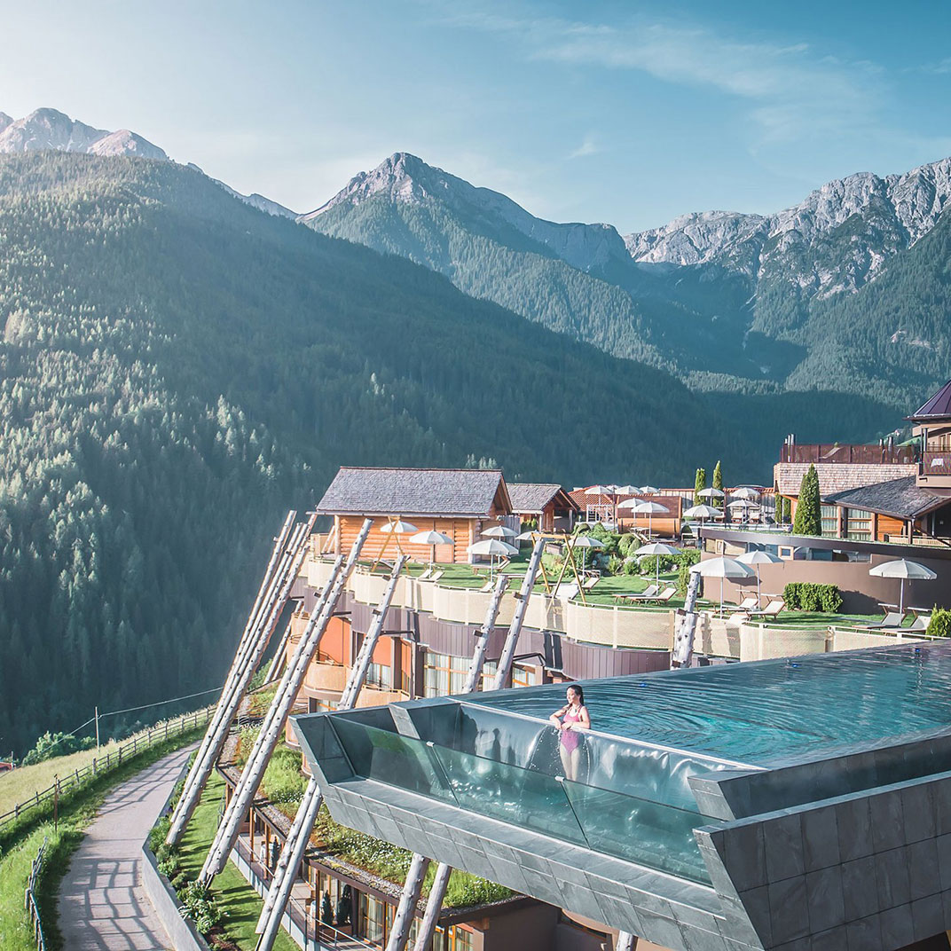 In quanto a panorami, quelli che si godono dall’Hotel Hubertus sono davvero straordinari: le maestose vette delle Dolomiti abbracciano l’hotel e si lasciano ammirare dalle ampie vetrate delle camere e delle suite, dalle immense terrazze e dall’iconica Sky Pool, una piscina sospesa che reinterpreta il concetto di infinity pool in modo sorprendente.