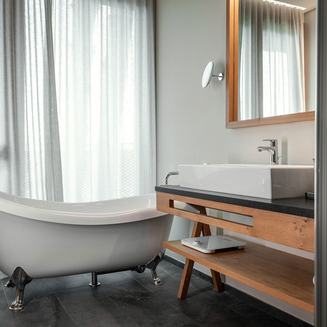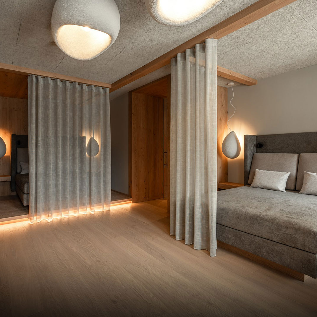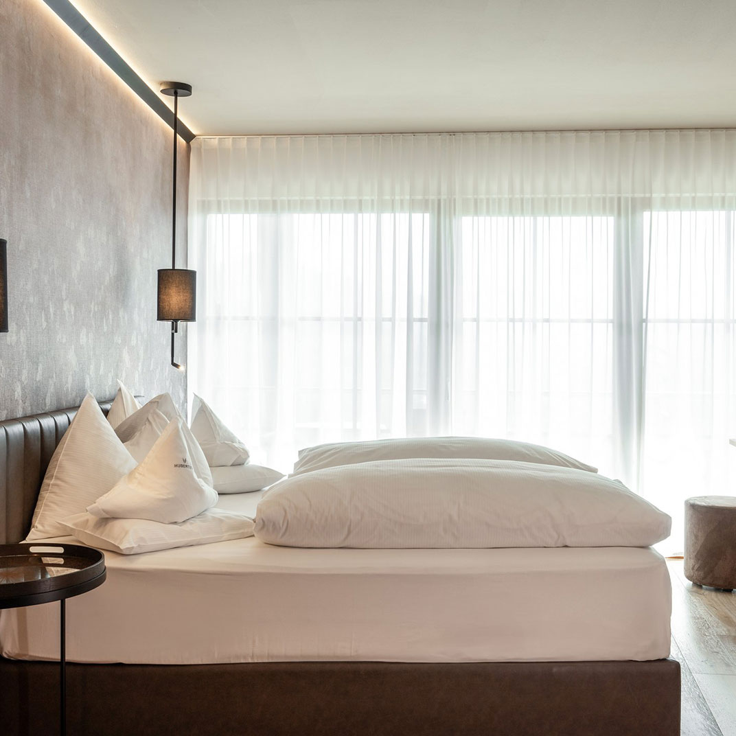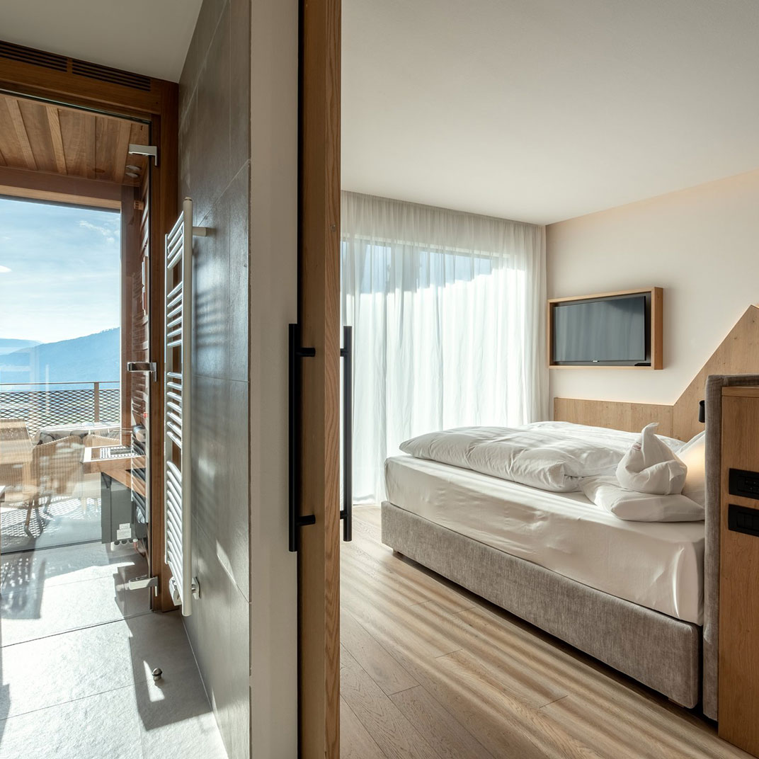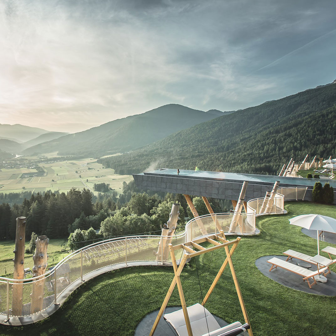 In quanto a panorami, quelli che si godono dall’Hotel Hubertus sono davvero straordinari: le maestose vette delle Dolomiti abbracciano l’hotel e si lasciano ammirare dalle ampie vetrate delle camere e delle suite, dalle immense terrazze e dall’iconica Sky Pool, una piscina sospesa che reinterpreta il concetto di infinity pool in modo sorprendente.