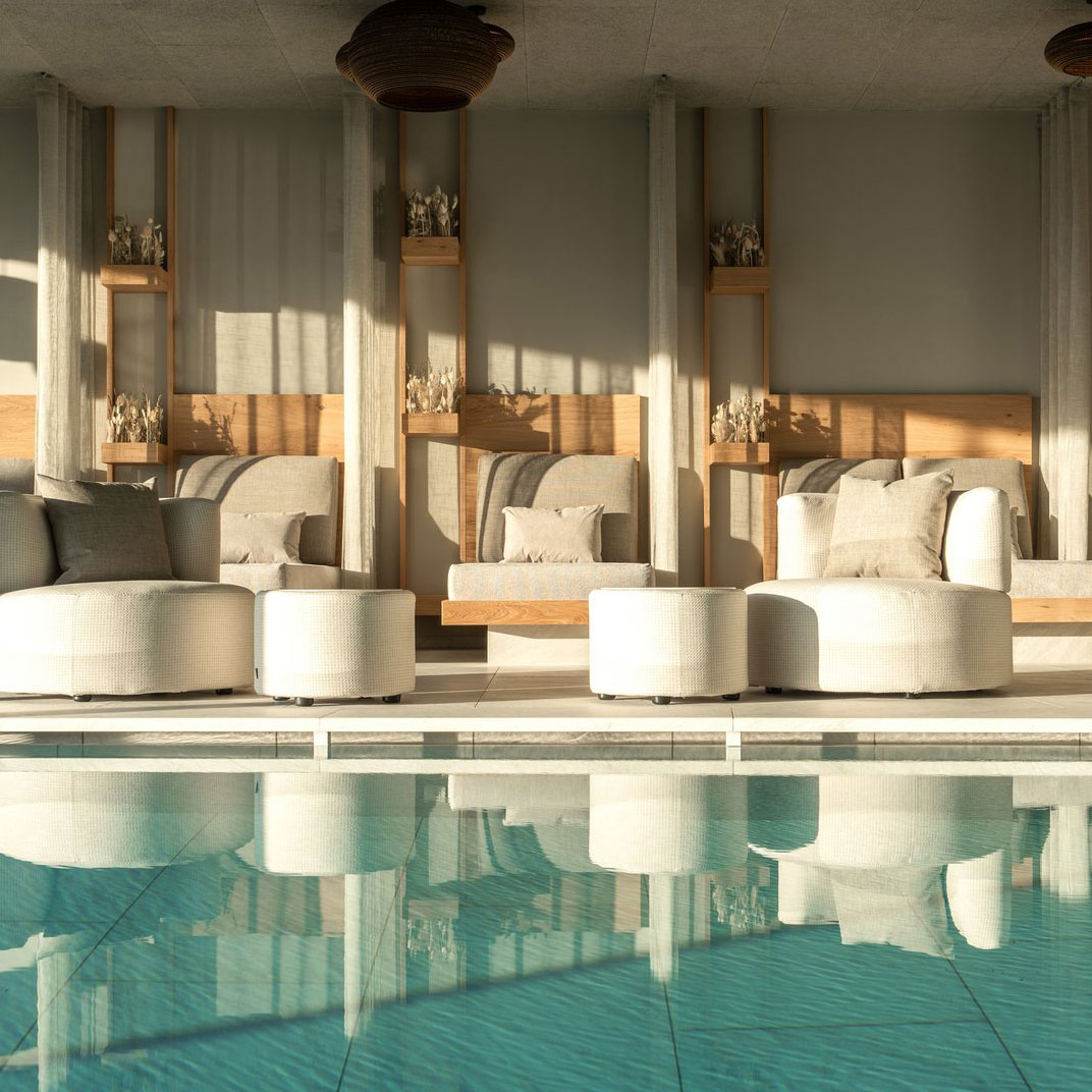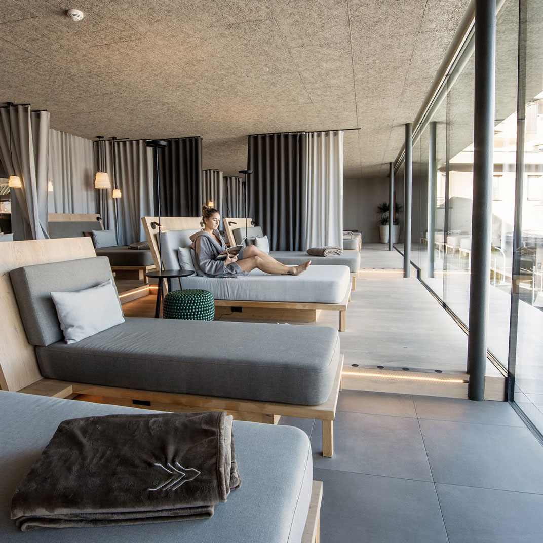 All’interno, lo stile contemporaneo e raffinato reinterpreta con eleganza l’atmosfera di un tradizionale lodge alpino. La spa, l’area fitness e le numerose attività sportive offrono possibilità pressoché illimitate di benessere e svago, mentre il ristorante unisce l’autenticità della cucina alpina ai profumi mediterranei.