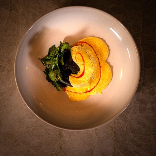At Ohad Amzallag's restaurant a stone's throw from Place de la République, diners sample his cooking in convivial fashion, all seated at a large marble table d'hôte. The Israeli chef serves Middle Eastern-influenced cuisine that gives pride of place to seafood ingredients and fermented vegetables, such as oyster cream with mint granita, chilli and koshu; lobster and agnolotti with ricotta, spinach and sage cream; and a delicious cheesecake with caramelised garum.