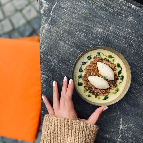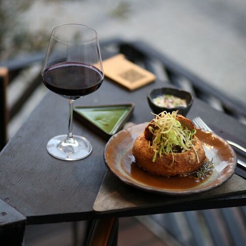 This trendy establishment housed in a former Greek theatre in the picturesque old town of Urla is all about sustainability. Respect for the environment is evident in every detail, from the wild-foraged ingredients used to the water conservation and waste management measures in place. The restaurant's freshly pressed olive oil is a highlight of its modern cuisine, which is full of personality. Acidity and spiciness are used to bring life to the dishes, as seen in a salad of wild herbs, berries, and a vinaigrette made from fermented beans and pollen. This is where nature's complexity comes alive!