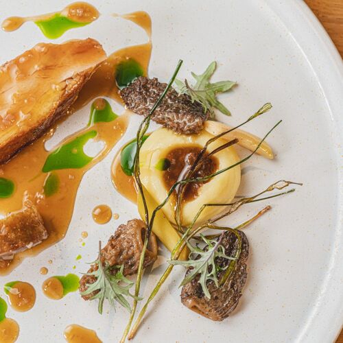 This rustic restored barn is the more informal dining option at the Moor Hall country house hotel, and shares the same ethos as its revered big sister, with much of the seasonal produce coming from their walled garden and grounds – which are well worth exploring. The airy dining room comes with exposed beams and an open kitchen, while the hedge-enclosed terrace by the lake is magical on a sunny day. The cooking is modern and imaginative, with understated elegance and well-judged combinations of punchy flavours – usually started off with a snack of home-cured salami.
