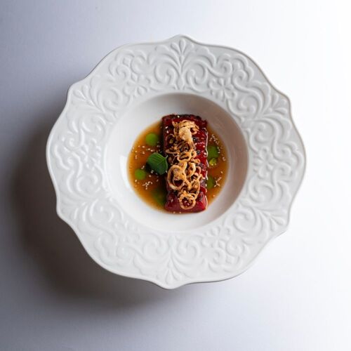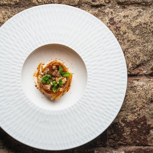 Nel reatino, ma ai confini con l'Umbria e quindi in una zona dove la cucina mescola più territori e influenze, il ristorante si trova all'interno di un pittoresco borgo medioevale arroccato su una collina. Sale essenziali tra mura in pietra, ma col bel tempo vi consigliamo di approfittare del fascino di Contigliano e mangiare all'aperto, ai piedi della chiesa. La chef Carlotta Delicato punta ad interpretare al meglio i prodotti del territorio, senza inutili fronzoli o complicazioni, per mettere al centro del piatto i sapori degli ingredienti; vivamente consigliato lo spaghettone mare e lago, con una leggera brunoise di zucchine. Siamo in Lazio: approfittate delle buone etichette di piccoli produttori presenti in carta come il Cabernet Sauvignon Masseria Barone, di media intensità e aromi ampi e decisi.