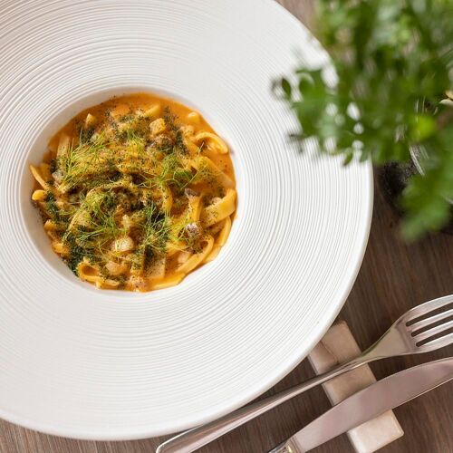 Elegante e dai toni classici, questo accogliente ristorante si trova nel centro storico della località. Lo chef-patron vanta solide capacità e una grande passione, proponendo - oltre ai percorsi gastronomici - piatti di cucina moderna che alternano pesce e carne.