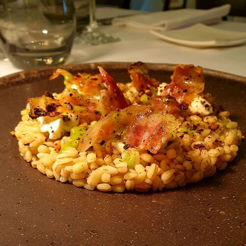 Il nome deriva dal latino e allude alla piccola grotta nel cortile, scavata nel tufo che ospita pochi - privilegiati - tavoli; grazioso ristorante nato dal sodalizio di una giovane coppia, Flavia si occupa della sala, mentre Alessio sovraintende alla cucina. Linea gastronomica verace, i piatti riportano titoli simpaticamente eloquenti ''Quel viaggio che non scordo'' o ''Dal 2014''; imperdibile il Riso Acquerello al caprino fermentato, tartufo nero e pesto di erbe aromatiche, ma altrettanto pregevoli i dolci, in primis lo strudel di mele!