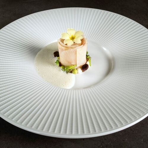 Ci troviamo in zona industriale, ma nel moderno showroom di un noto produttore di pentole ed oggetti per la cucina, e… lo si vede già dall'entrata, accanto al negozio! Al primo piano va in scena una cucina d'autore: lo chef Andrea Rota si esprime con entusiasmo su gusti ed accostamenti interessanti e la selezione enoica, che contempla tutta Italia, permette un buon wine pairing.