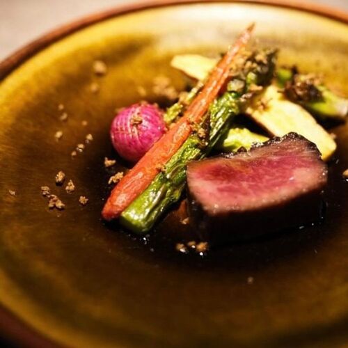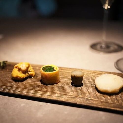 The friendly welcome by the Koyamas will make you feel at home at this restaurant with no sign outside. The wife is the chef and her husband is the sommelier. Wine and sake are paired with the set menus. The dishes are based on dashi from kombu and katsuo, and Western elements are incorporated for a touch of creativity. Not only is there synergy between the dish and the sake, but the husband-and-wife team makes for a sense of easy-going togetherness.