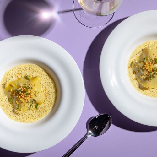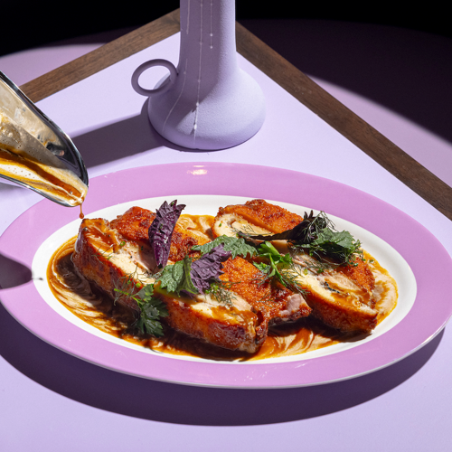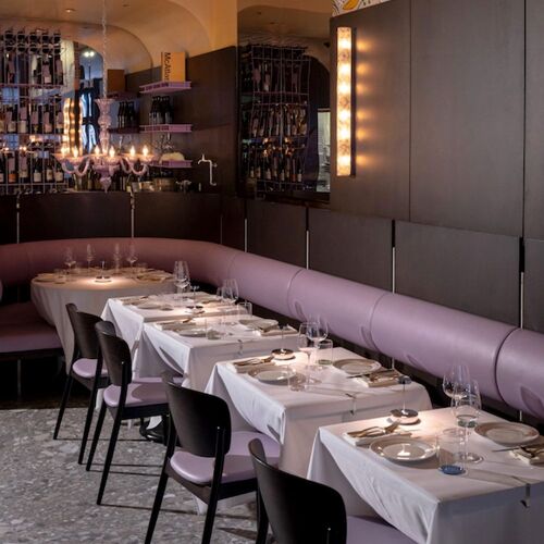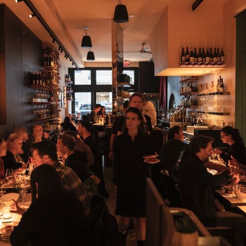From the team behind Air’s Champagne Parlor comes this SoHo hit where fashionable diners scooch into cozy, purple banquettes. The atmosphere is electric but easy-going servers keep their cool, ever personable and attentive. Rows of Spanish turbot dangling in a dry-aging locker at the front signal ambition in the kitchen. Pulling inspiration from all over, the cooking can be a touch erratic, but there’s joy to be found in the brioche popover with black garlic butter or the crispy rice with eggplant puree and glazed maitake mushrooms. Dry-aged fish is an obvious order as well. There’s also no shortage of wine: The team has curated a dreamy, thoughtful selection that deserves extra attention.