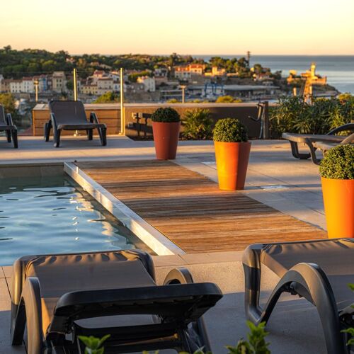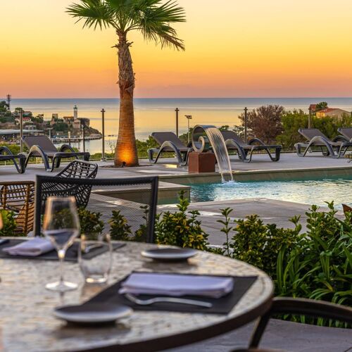 The food shows off the undeniable richness of the Catalan terroir, and varies freely with the passing seasons, so it is impossible to tire of it! As for the setting, it is an invitation to daydream. The picture window gives onto the fine terrace and, beyond, the port and the sea. Le Cèdre has it all.