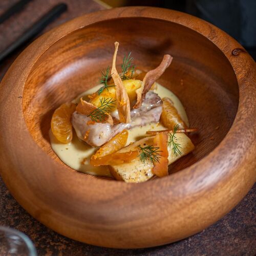 Good ideas, know - how... Julien Chazal, a young chef from Avignon, shows us how it's done! Furthermore, his seasonal cooking is visually meticulous, with presentations that leave nothing to chance. And let's not forget the down - to - earth, smiling service.