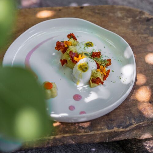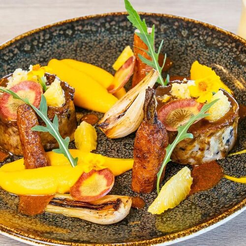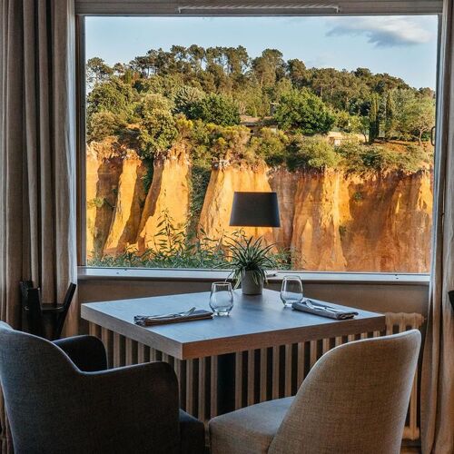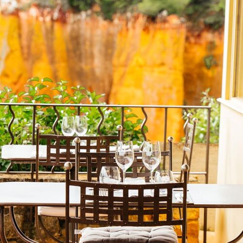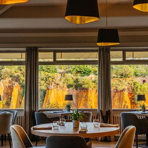 Taking in the Luberon and the famous ochre cliffs of Roussillon, the view from this restaurant is nothing short of spectacular! As for the food, the short, seasonal menu proposes bistronomy-style dishes with Provençal influences: crispy aubergine, baba ganoush with coriander and fromage blanc with lime; grilled Ventoux pork, peppers stuffed with Coco de Paimpol beans, piperade and apricot condiment; Musquée de Provence pumpkin confit with vanilla, sponge cake with pistachios. A moment of culinary bliss far from the crowds of tourists.