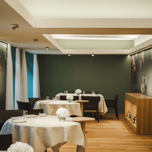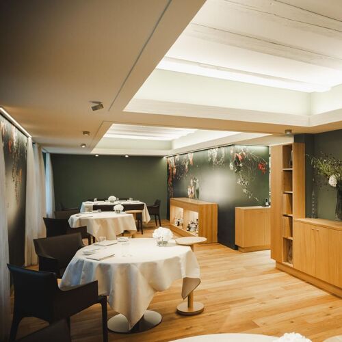 Lo Jägerhof è una struttura dalla lunga storia culinaria! Dal 2016, l’ex sous-chef Agron Lleshi è al timone del ristorante e propone una cucina stagionale moderna, che cerca ispirazione nel territorio e all’estero. Gli ospiti possono optare per un ambizioso menù da tre a otto portate (la portata al tartufo è da anni un piatto forte) o ordinare alla carta. A pranzo, l’offerta è un po’ più semplice. La madre dello chef prepara i panini ogni giorno. Il design degli interni, elegantemente sobrio, con toni caldi e linee moderne, crea un’atmosfera accogliente. Il servizio, molto professionale, è assicurato da un team guidato dal sommelier Wilko Bachmann, che fornisce una guida esperta con un tocco personale, senza essere invadente: il calore e la passione sono palpabili! Con il caffè, viene servita un’ampia selezione di cioccolatini fatti in casa. Un consiglio: prenotate il “tavolo della cucina” per osservare gli chef in azione.