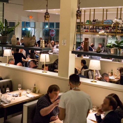 There’s something about this corner restaurant that makes it look so inviting—and sure enough, the moment you step inside you feel enveloped in the warm embrace of the bright, southern European sun. That’s not just down to the light, open feel of the large room, but also because of the charming service team. This may be the baby sister of Gemma restaurant, but the menu here looks to the wider Mediterranean for its influences, stretching from Morocco to Syria and round to Italy, France, and Spain. Dishes like octopus with freekeh and lamb with gigante beans are as colorful and appealing as they are satisfying and nourishing. If you can’t get a table—and the booths are much demanded—you can try your luck at the large counter bar.
