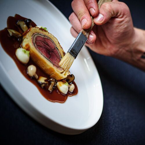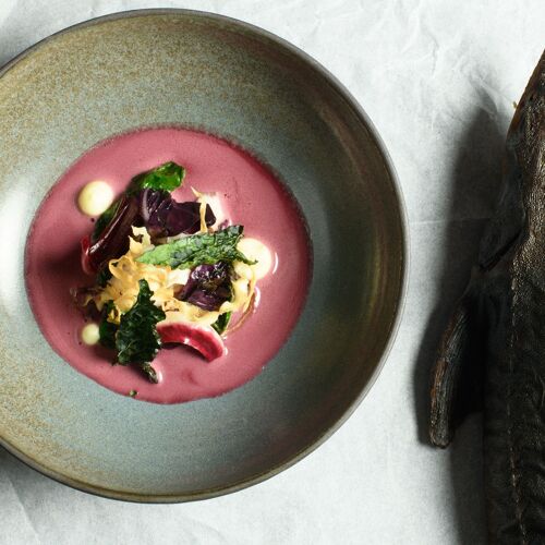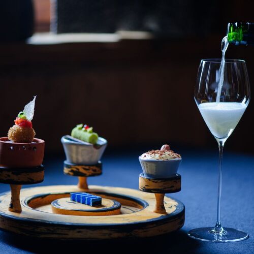 Seating just 12 diners, this compact restaurant in the centre of Nauders is accommodated in a 400-year-old traditional Alpine family room, now part of Alpen-Comfort-Hotel Central. The space exudes cosiness with warm wood throughout – from the lovely wooden floorboards to the walls and coffered ceiling – plus a charming tiled stove and traditional decoration. Creating a striking contrast to the historical surroundings, the modern cuisine is prepared by the team around owner Michael "Michi" Ploner and chef Oliver Mijic. You won't find a regular menu here; rather, guests are presented with a series of caricatures – and guessing their meaning is part of the experience. The set menu features numerous bold and regionally inspired courses with intriguing names. Handled by the kitchen team, the service is charming, engaging and informative – the head chef explains the dishes in a pleasing laid-back way, characteristic of Tyrol. There are both wine and non-alcoholic pairings – a standout is the apple juice infused with spruce needles.
