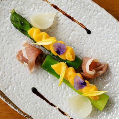 DOWNTOWN CUISINE is located in the chef’s local Satake Shopping Street. The chef arrays each table with Japanese vessels that recall memories of the working-class neighbourhood. The inspiration for the restaurant came from a world cooking contest, in which the chef competed with a concept designed to showcase the culture of Japan. Each plate is imbued with the passion to aim ever higher and the desire to thank and give back to the chef’s hometown.