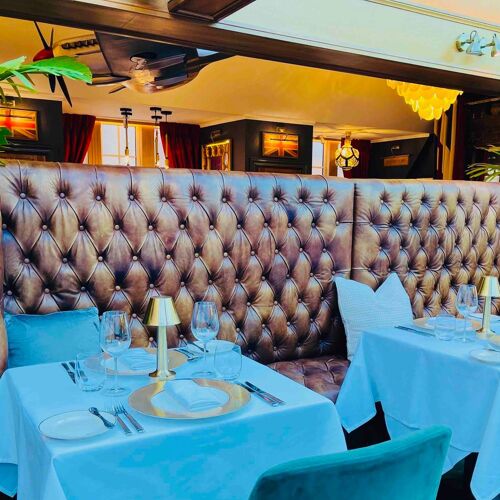 Behind the half-timbered walls of this stylish building lies a spacious restaurant that pays tribute to British culture, be it the Union Jacks on the curtains or the model Spitfire hanging from the ceiling. Across a range of menus, including fixed-price and tasting options, Chef Matt Cheal uses prime British produce from Cornish lobster to Aberdeen Angus beef in dishes that showcase his adept modern technique. Start your evening in style in the smart Warren’s Bar or, for a lighter meal, stay there all night to enjoy the small plates menu.