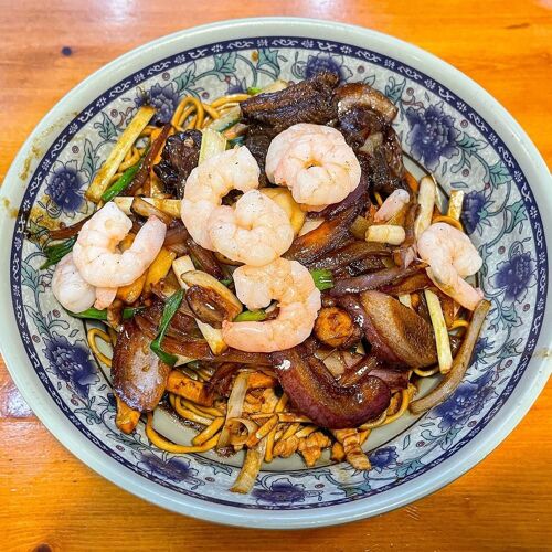 After opening in 2017, Wu Zi shot to fame, becoming the best-known noodle shop in the area. Classic Hangzhou-style noodles are either served in soup or tossed in sauces with various toppings – prepared to the exacting standards of the owner, a chef by profession. The pork kidney and liver are nicely browned while retaining their succulence and a lovely chewiness. Another must-try classic topping: shrimps and eel sautéed with onion, mushrooms and dried tofu.