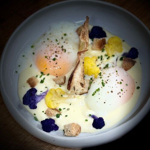 A town house with blue shutters next to the church, a wine cellar with over 1 000 labels, a chef who is following in her parents' footsteps. An undeniable talent in the kitchen, she combines classics (eggs in a red wine sauce, ham terrine with parsley etc), contemporary dishes (salmon gravlax) and specialities such as roast pigeon and sweetbreads. To be savoured in a refined bistro decor, where smiling service is the order of the day and the wine recommendations are on point.