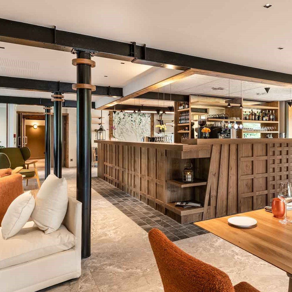 In the Bauges Massif, a UNESCO-protected Geopark, Auberge d’Aillon et d’Ailleurs offers the intimacy of a mountain inn with the character of a design hotel. Its fourteen rooms are each distinct, some drawing on Savoyard traditions, others looking outward to myth or memory: one equipped with a telescope for stargazing, another evoking the nostalgia of an alpine attic. The style is contemporary but warm, influenced by local artisans. Views open onto pastures, forest, or the village below, while the surrounding landscape provides year-round possibilities, from skiing and hiking to paragliding and wildlife watching.