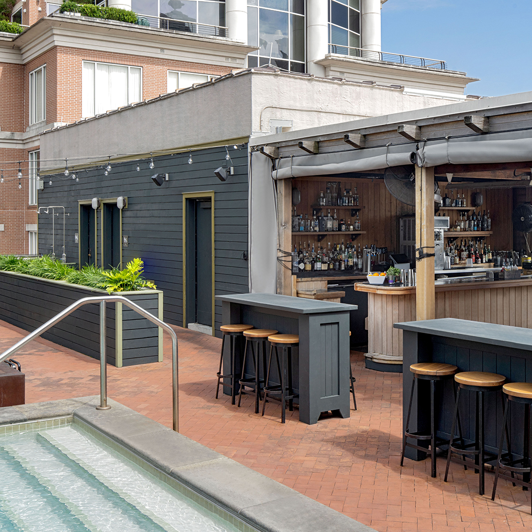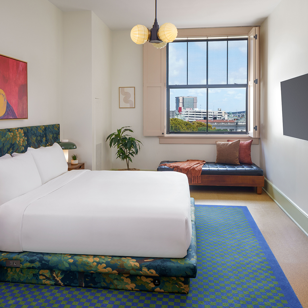 Rooms come with high ceilings, an underrated benefit of repurposed industrial spaces, as well as a mix of vintage-style fixtures, authentic vintage furniture, and locally sourced artwork. But guest rooms are only part of the picture — The Barnett is home to some genuinely lively, inviting public spaces. Seaworthy is set in an 1832 Creole cottage, Brutto Americano combines classic Italian and Southern flavors, and up on the rooftop at High Five, small plates and seasonal cocktails are served in a verdant setting next to the outdoor pool.