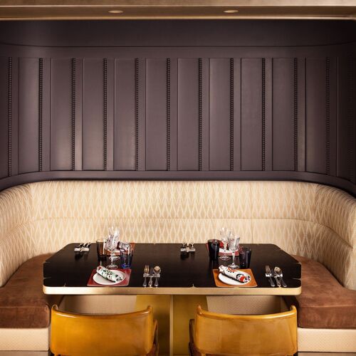 The exclusive Hotel Crillon is home to a luxurious brasserie whose stylish Art deco interior is signed Paul Pairet. Alcove tables and a few seats at the counter opposite the mixologist. An à la carte lineup designed to be shared, hence the splendid cuts of grilled meat, but also a festival of individual dishes: tartare of greater amberjack, prime rib of Hereford beef, gratin dauphinois and cherries jubilee flambéed tableside. Spot-on service, upbeat vibe and reasonably priced given the venue.